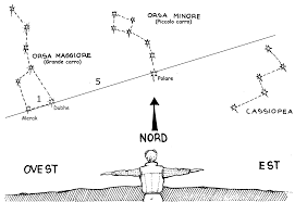 - Un altro modo per trovare la nostra Polare è simile a quello precedente: bisogna individuare l'Orsa Maggiore (o Grande Carro), prolungare per circa 5 volte la distanza che vi è tra le stelle più esterne del carro ed ecco qua il nostro nord;