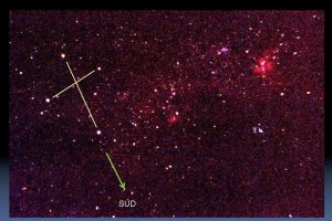 - Un diverso metodo per trovare il Sud è grazie alla costellazione della Croce del Sud. Essa è abbastanza piccola ma identificabile grazie alla sua forma a croce. Bisogna tracciare una linea immaginaria tra la stella più "bassa" e quella più "alta" e moltiplicare la sua lunghezza per circa 5 volte, in quella direzione troveremo il sud;